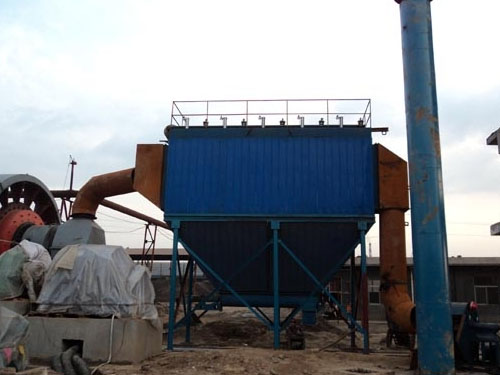 由含塵氣體進入分室(離線)除塵器收塵管道,由管道的引入進入氣箱脈沖除塵器的灰斗,由于粉塵有風機吸力風速快、管道面積小,粉塵進入灰斗后速度減慢,擴散,較大的粉塵顆粒自沉降或撞擊到灰斗壁上也沉降灰斗。細微的余塵上升多個過濾室,粉塵由濾袋阻攔過濾,粉塵粘附濾袋外表。凈氣通過濾袋進入凈氣室把合格凈器排到大氣中。