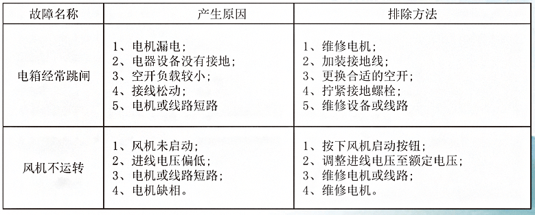 ①風機是否有抖動,動力線路是否完好、運行中是否有異響、風機及管道內(nèi)有無雜物。
