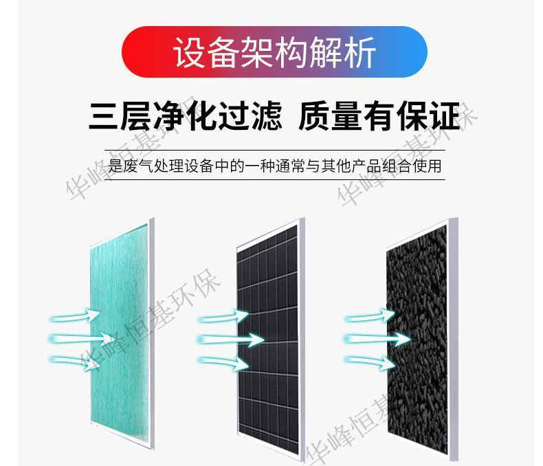 3、采用新型的活性炭吸附材料—蜂窩狀活性炭,其與粒(棒)狀相比具有優(yōu)勢(shì)的熱力學(xué)性能,低阻低耗,高吸附率等,極適合于大風(fēng)量下使用。